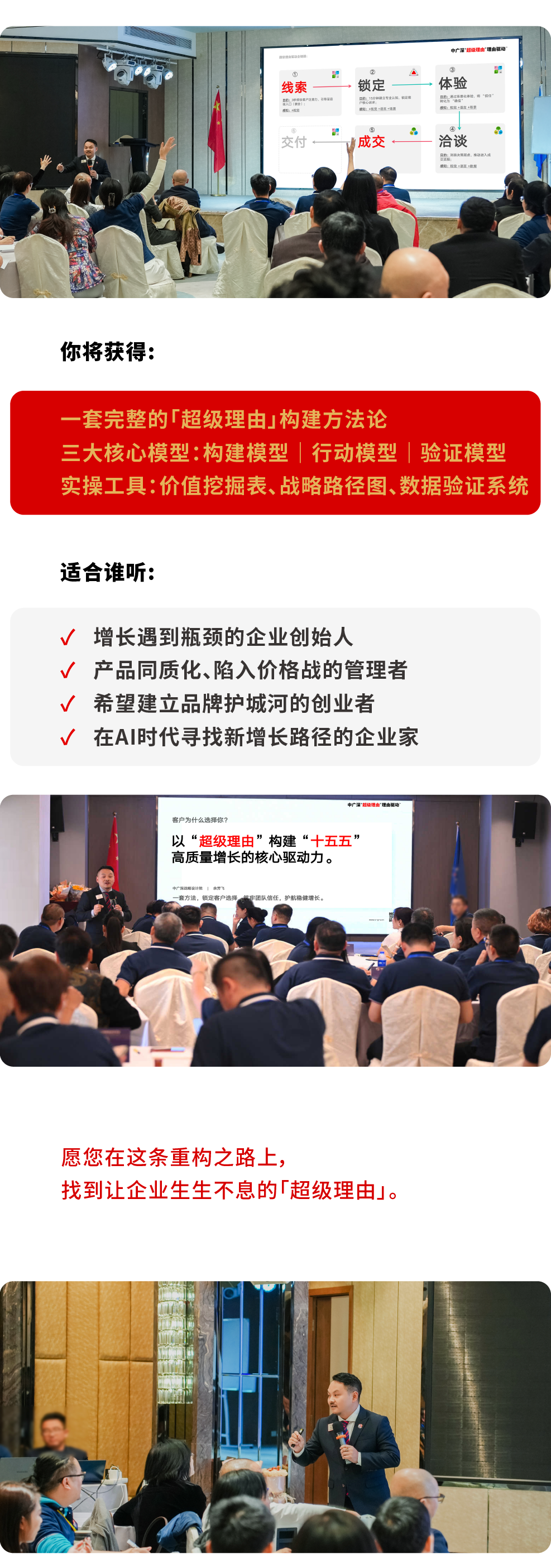 本课程以《孙子兵法》“先胜而后求战” 为思想内核,提出 “超级理由” 战略系统 —— 帮助企业先构建不可替代的价值内核,再进入市场竞争。